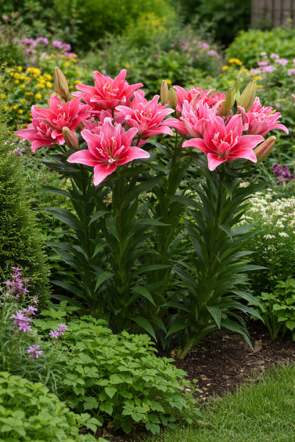 Ľalia Double Lady vyžaduje slnečné až polotienisté stanovište s priepustnou, výživnou a dobre odvodnenou pôdou. Na ťažkých a mokrých pôdach hrozí hnitie cibule, preto je pri výsadbe vhodné obohatiť pôdu kompostom alebo pieskom na zlepšenie štruktúry. Cibuľu vysádzame do hĺbky približne trojnásobku jej výšky – tým zabezpečíme stabilitu rastliny a ochranu pred mrazom. Vhodné je zvoliť chránené miesto, kde stonky nie sú vystavené silnému vetru.