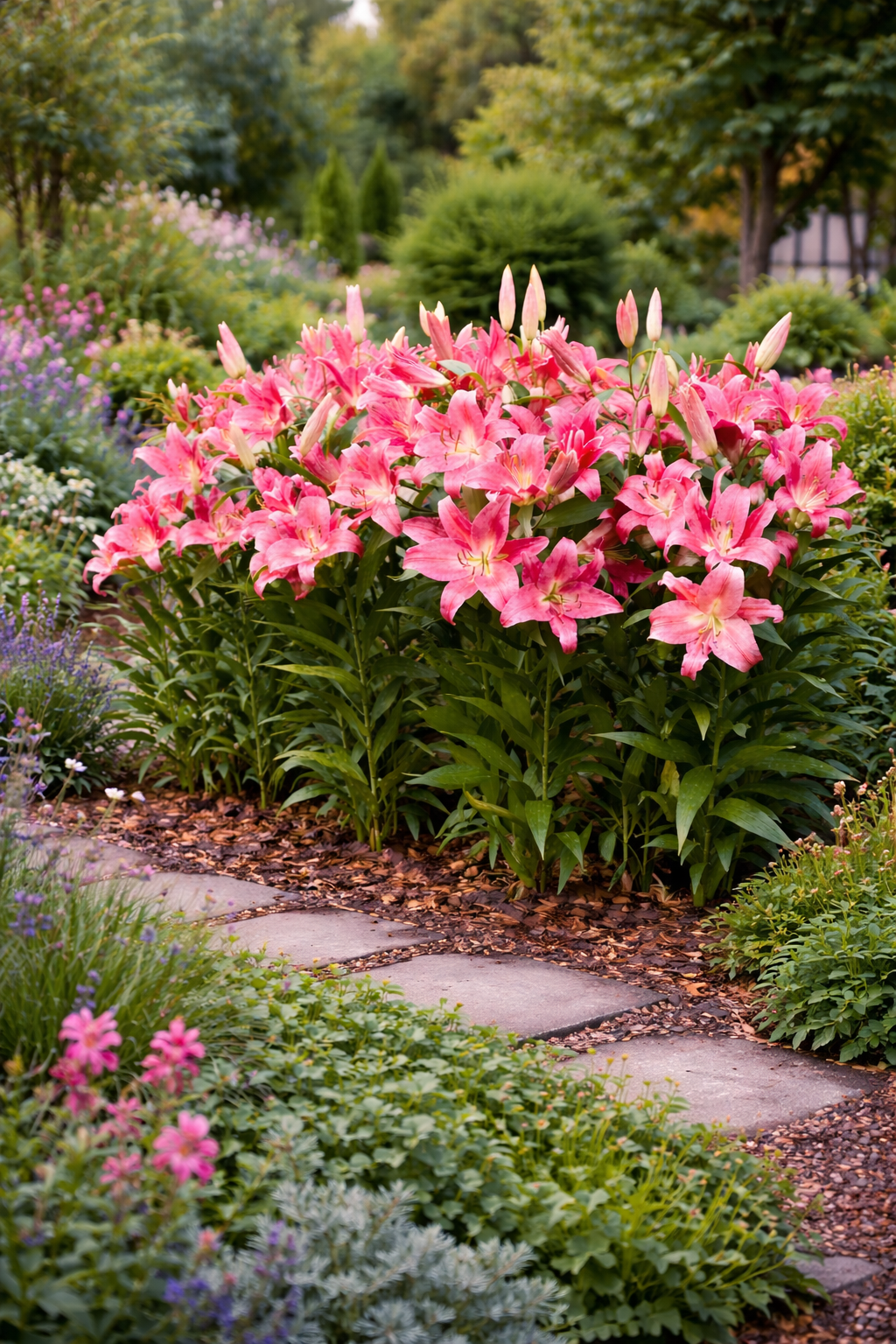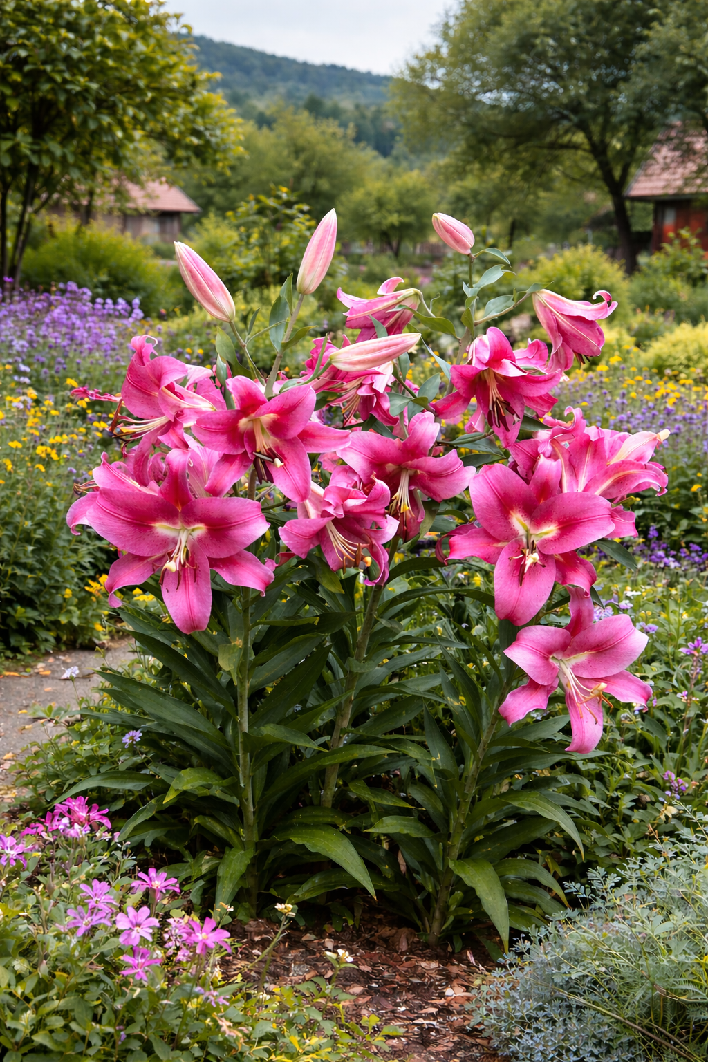 Žiarivá ázijská ľalia s výraznými ružovo-červenými kvetmi, kompaktnou stavbou a spoľahlivým bohatým kvitnutím – ozdoba každej záhrady.